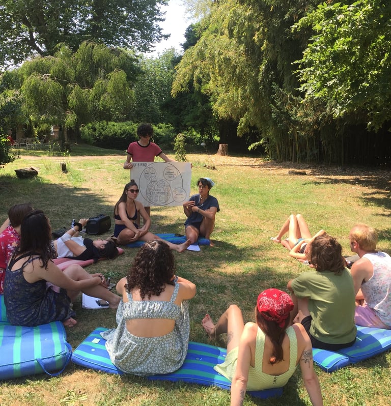 Les séjours sont co-construits, chaque personne peut proposer, si iel en a envie, des ateliers, des thématiques de réflexions, des activités (ex : cercles de parole, débats, lectures, ateliers corporels, temps de soin...).